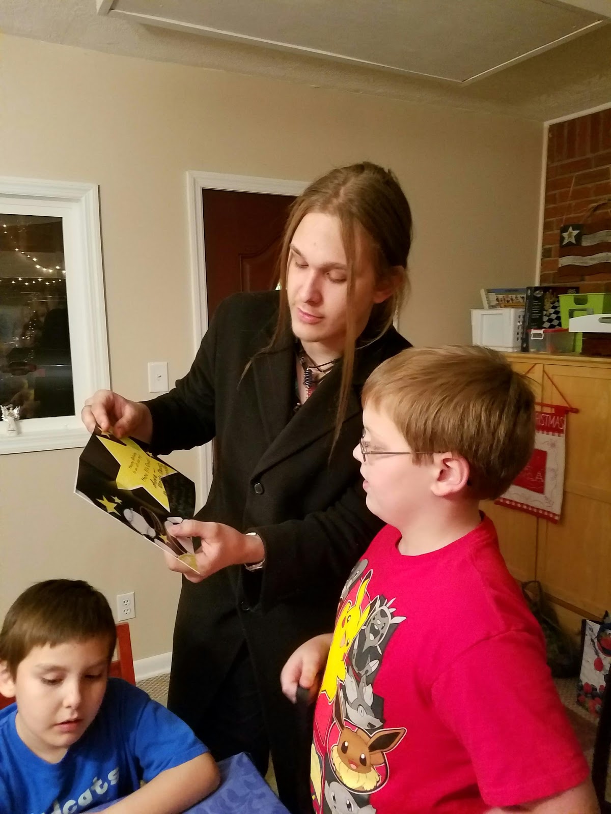 I love hanging out with Jack. We went to a fun Christmas party. Jack made a gingerbread house,ate pizza and played with friends,and I made crafts.