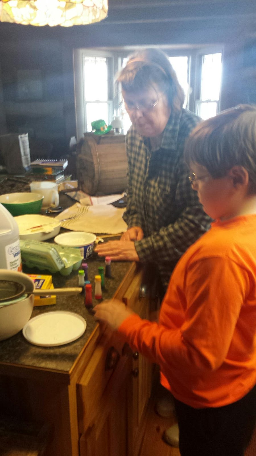 We had our usual school day and we also finished up our egg experiment. We are learning about chemical reactions, osmosis and absorbancy . We finished up our super cool jello eggs. Jack was really pleased with how they turned out and they will look super cute and taste great at the family Easter party.